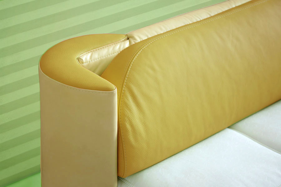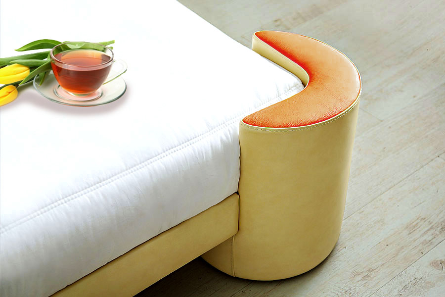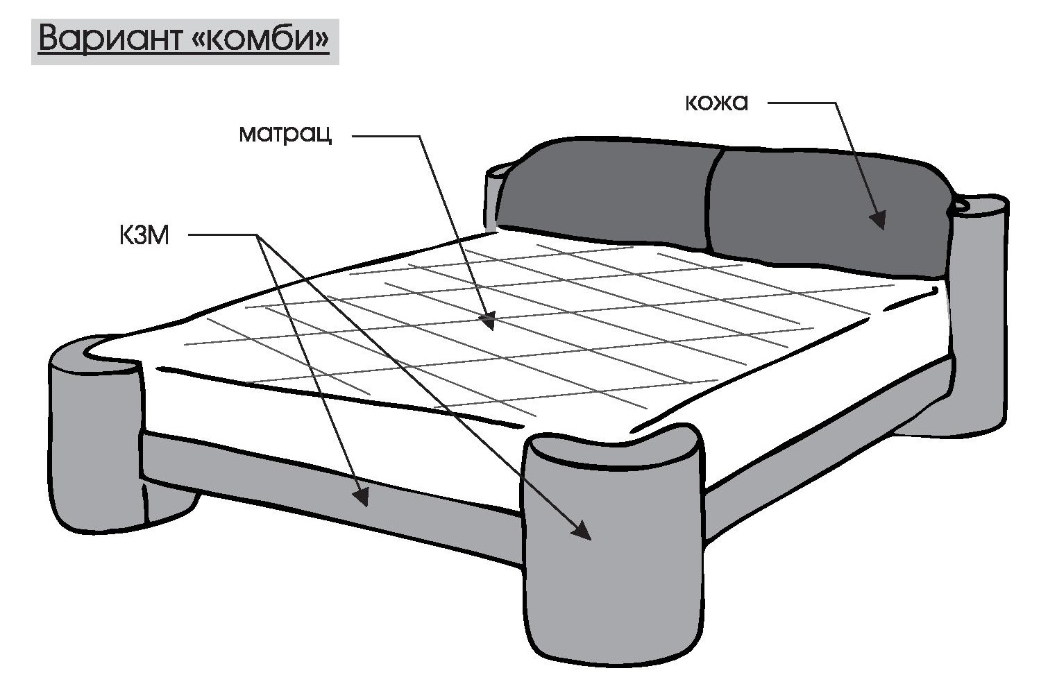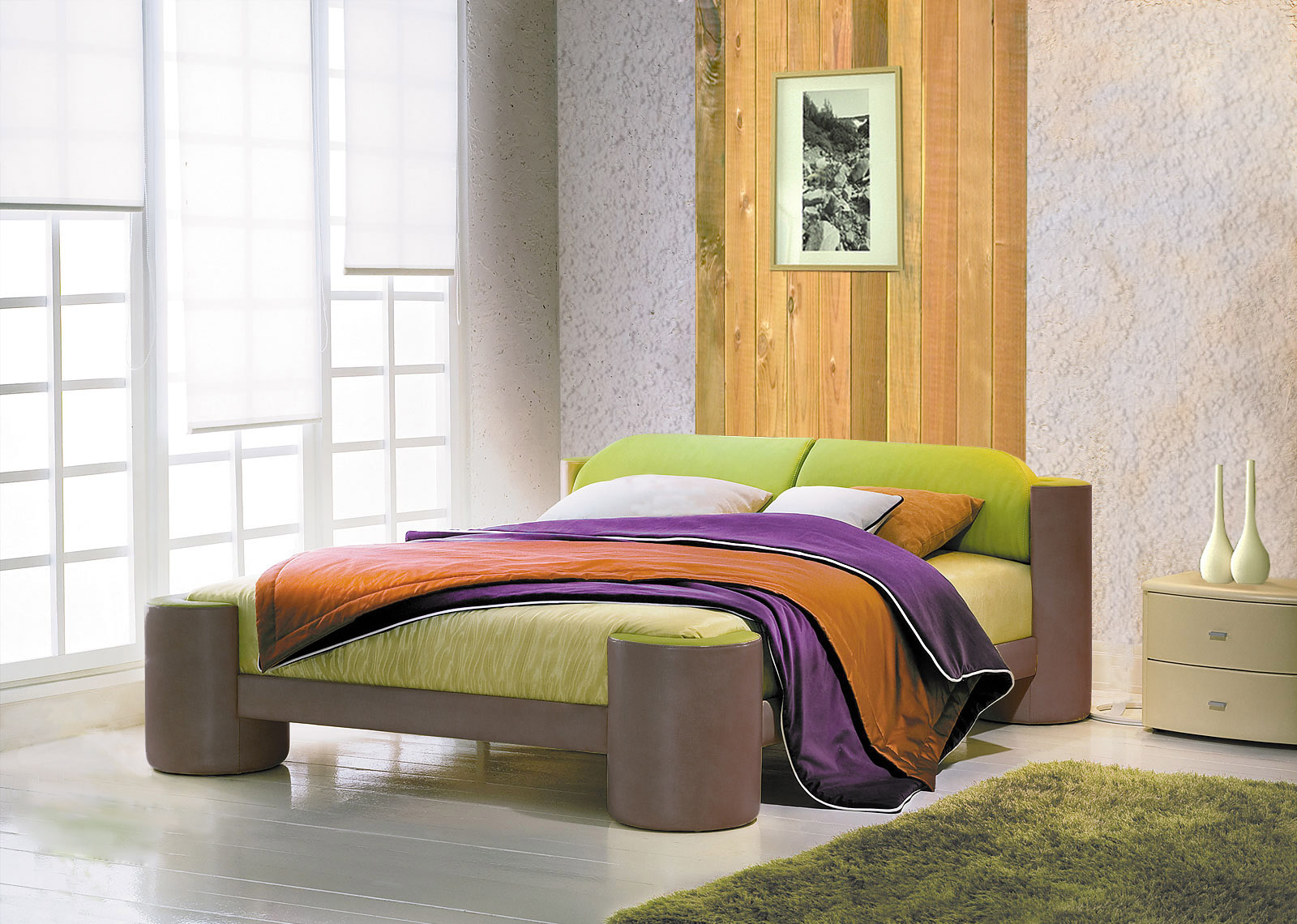 Данная кровать может быть выполнена в комбинированной отделке из искуственной и натуральной кожи или в различных цветовых вариантах.