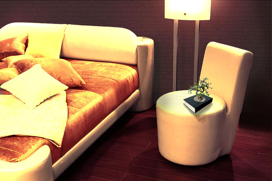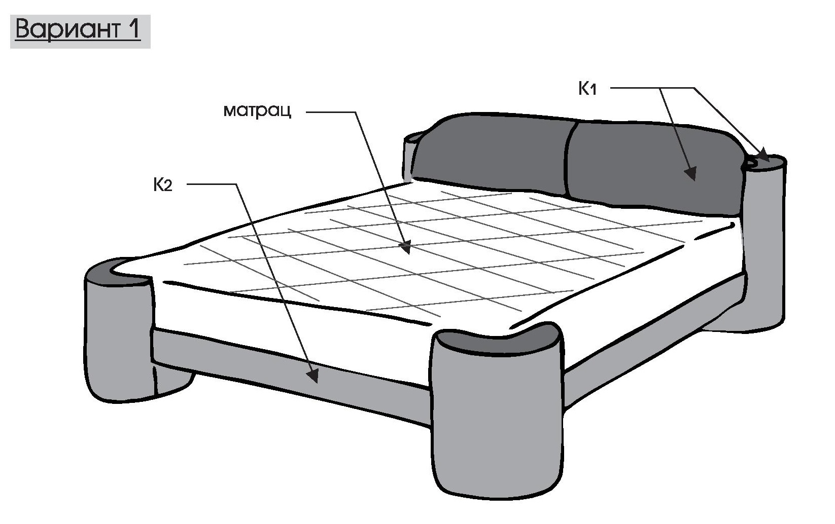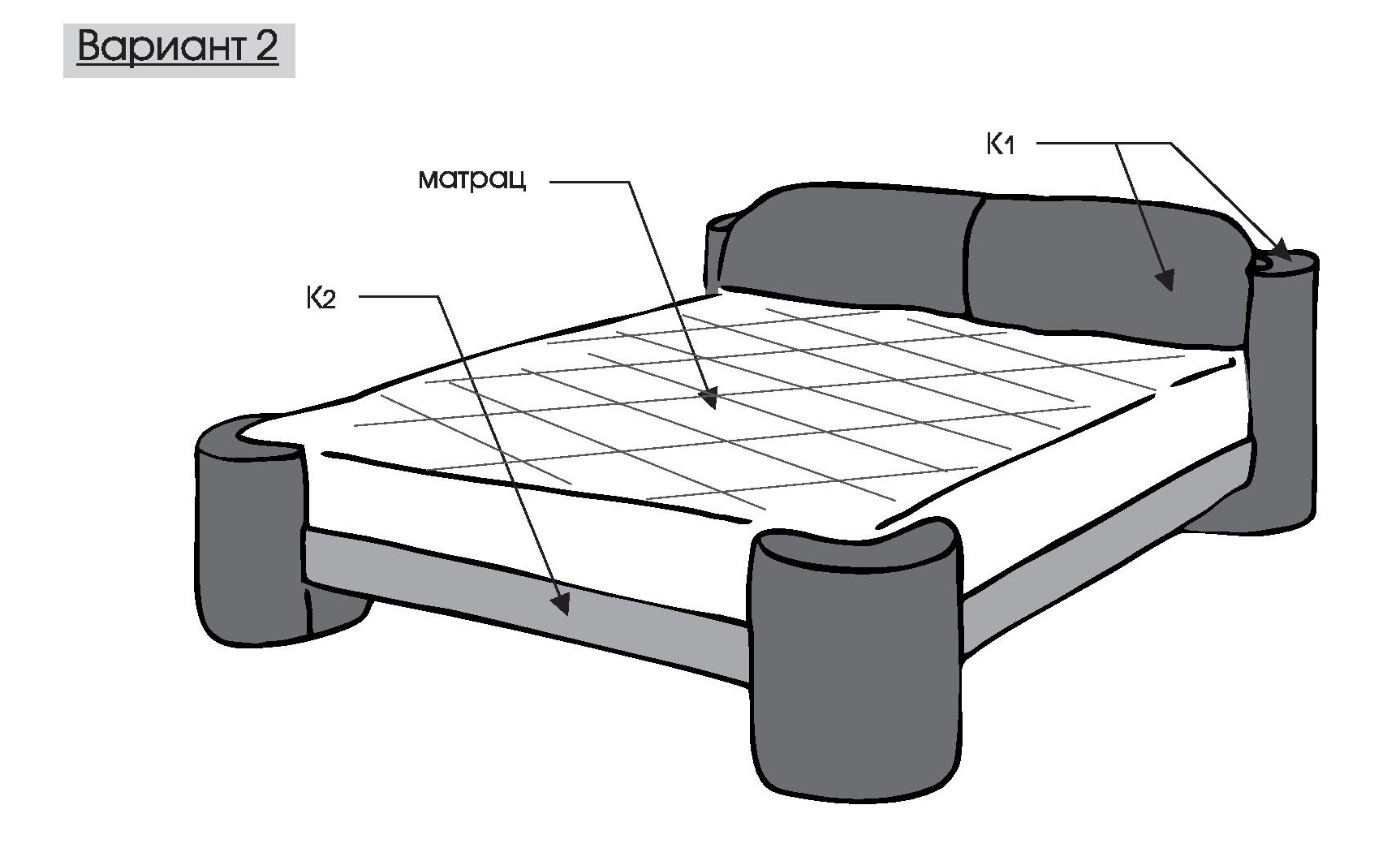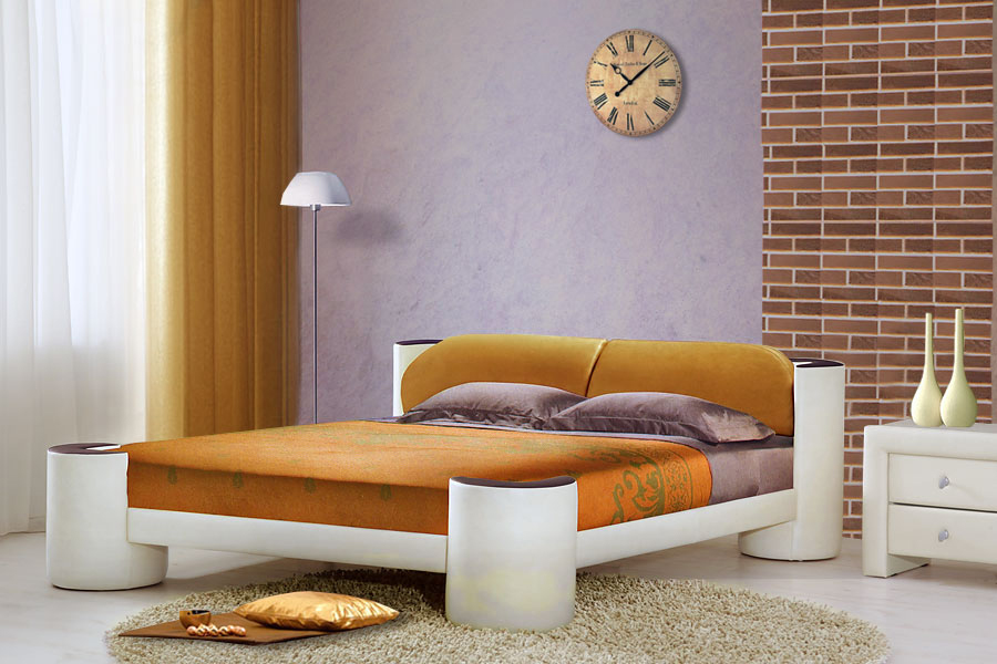 Функциональный дизайн, не содержит ничего лишнего. Основание базируется на декоративных мягких опорах-столбиках, что обеспечивает надежность, прочность и устойчивость конструкции. Металлическая рама оснащена высококачественными ортопедическими латами, выполненными из твердолиственных пород древесины.