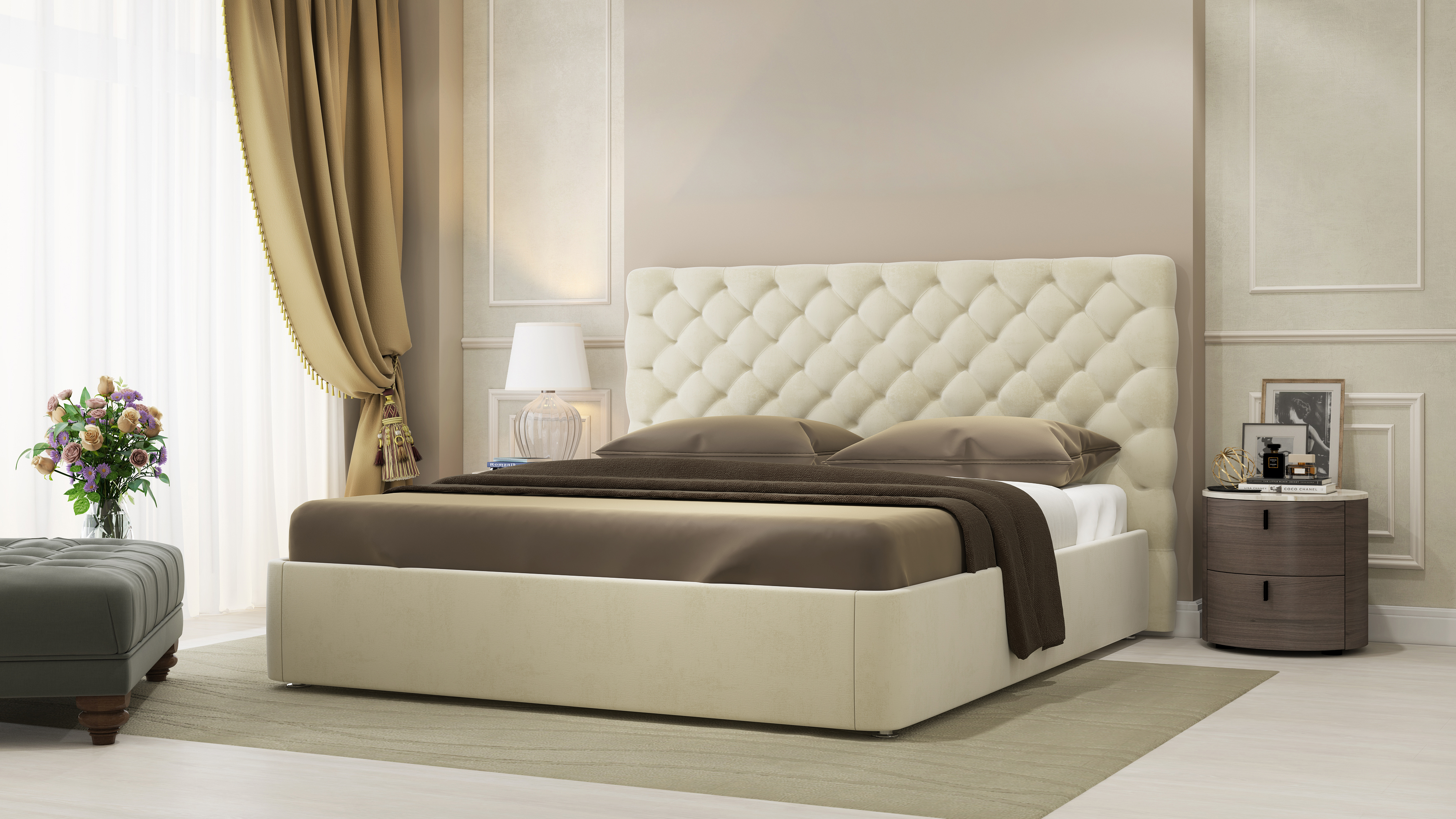Эксклюзивные ткани, глубокая утяжка спинки, монументальность и мягкость кровати Эстель сделают вашу спальню изысканной и подарят множество волшебных мгновений.