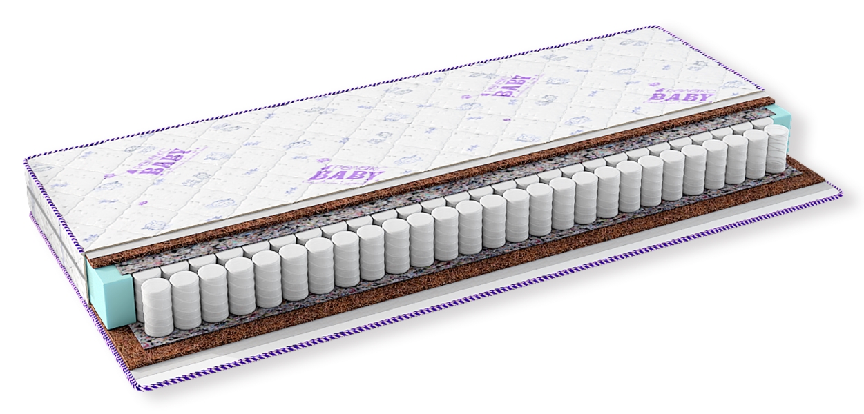 Бэби Комфорт Люкс - жесткость выше средней. Упругий матрас, в основе которого - независимый пружинный блок, повторяющий контуры тела и обеспечивающий правильное распределение нагрузки веса тела на поверхность матраса. Кокосовое волокно обеспечивает долговечность матраса. Матрас рекомендуется детям от 4 лет при первых признаках нарушения осанки.