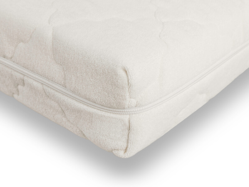 Матрас имеет съемный чехол с молнией, которая позволяет снять его и постирать. Изготовлен из махрового полотна, простеганного на слое гипоаллергенного волокна. Махровая ткань имеет неповторимую природную особенность «свободного дыхания», обладает легким массажным воздействием действием и не вызывает раздражения.