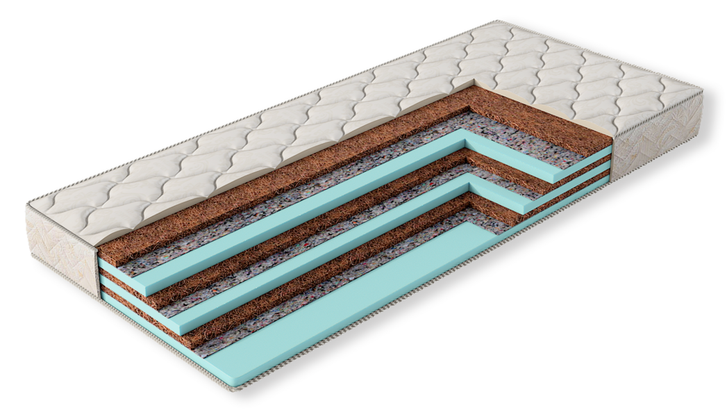Латексированная кокосовая койра - Наполнитель из спрессованных волокон кокосового ореха, пропитанных специальным составом на основе натурального латекса. Чрезвычайно прочен и долговечен, придает матрасу упругость и жесткость.