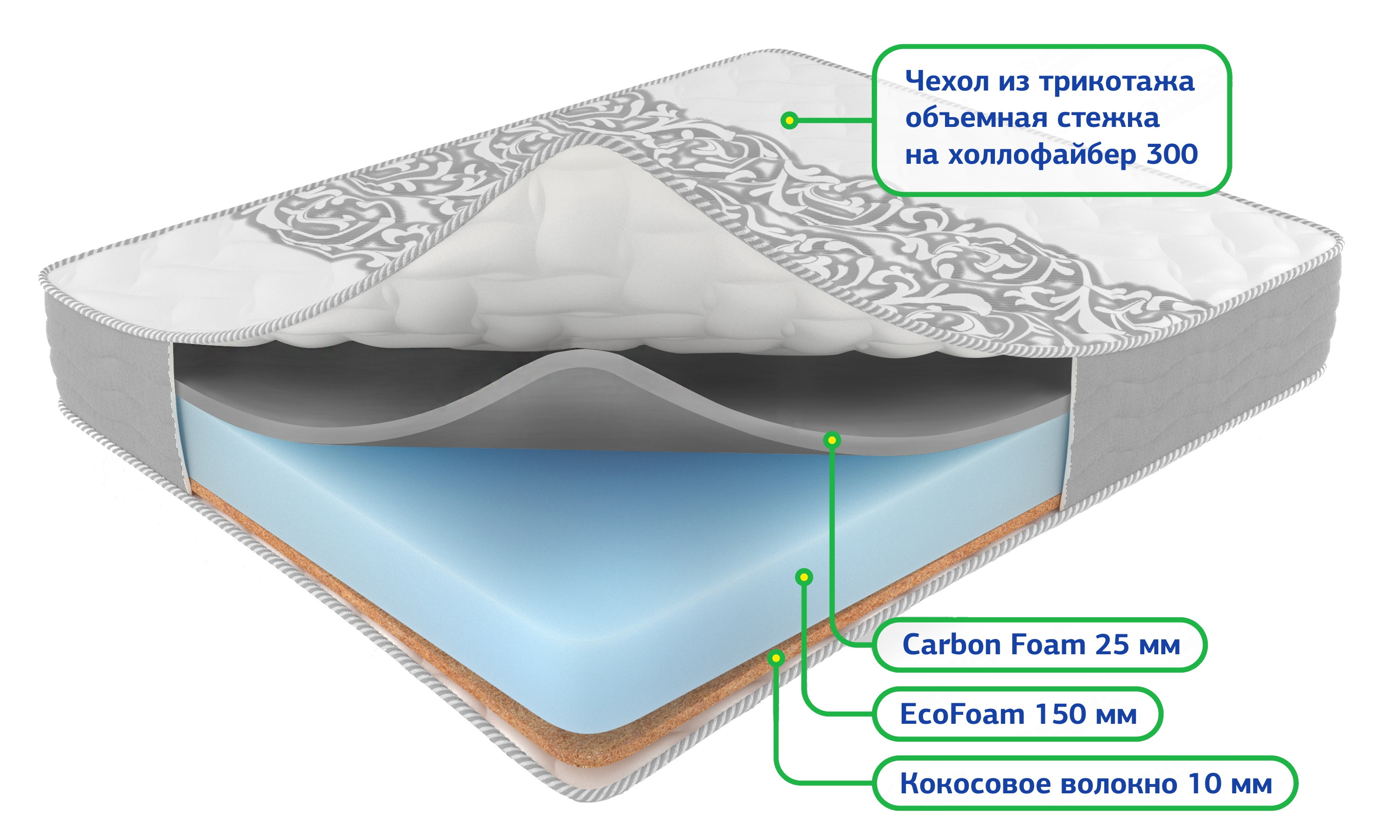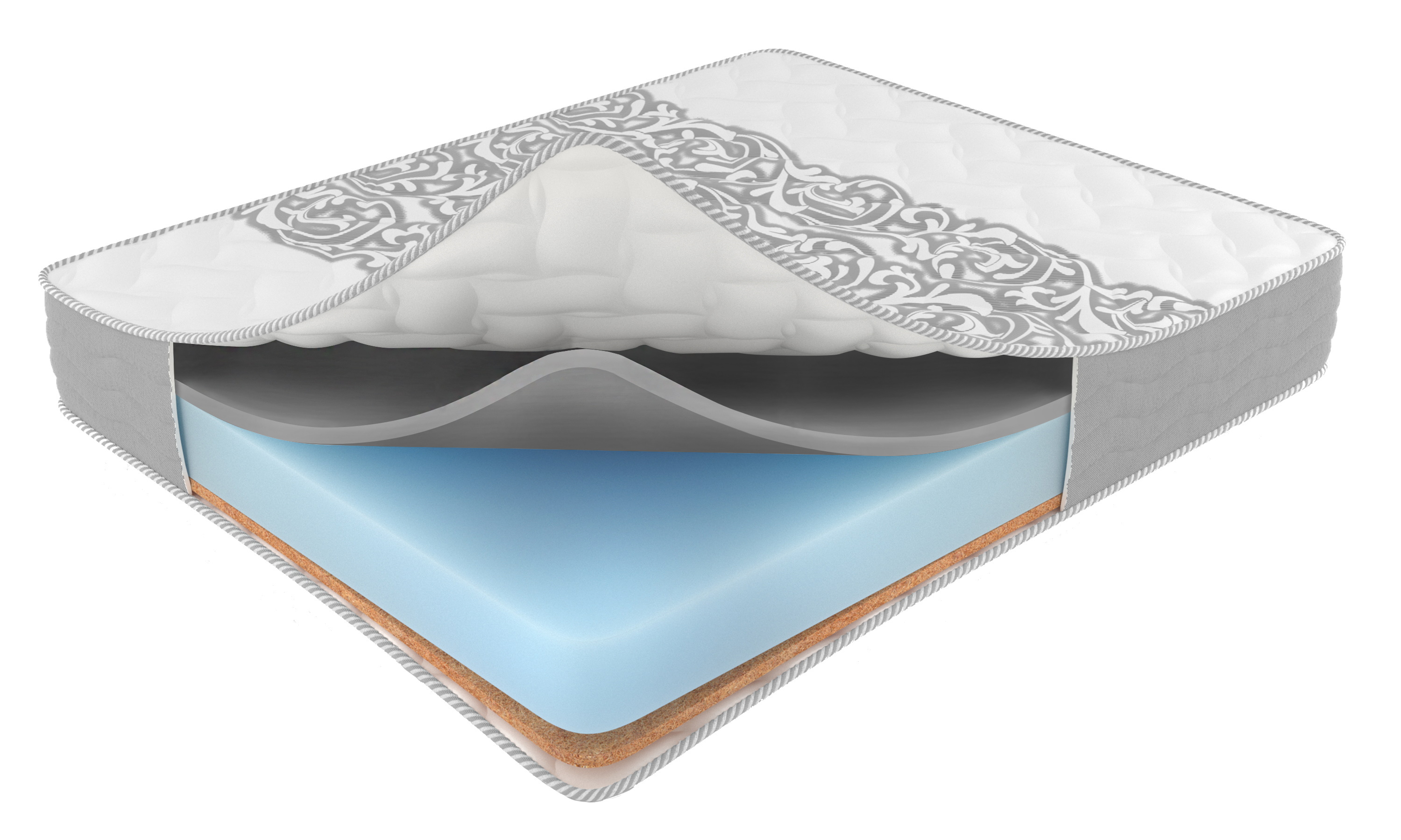 Внутренние слои из койры придают матрасу ровности и жесткости.