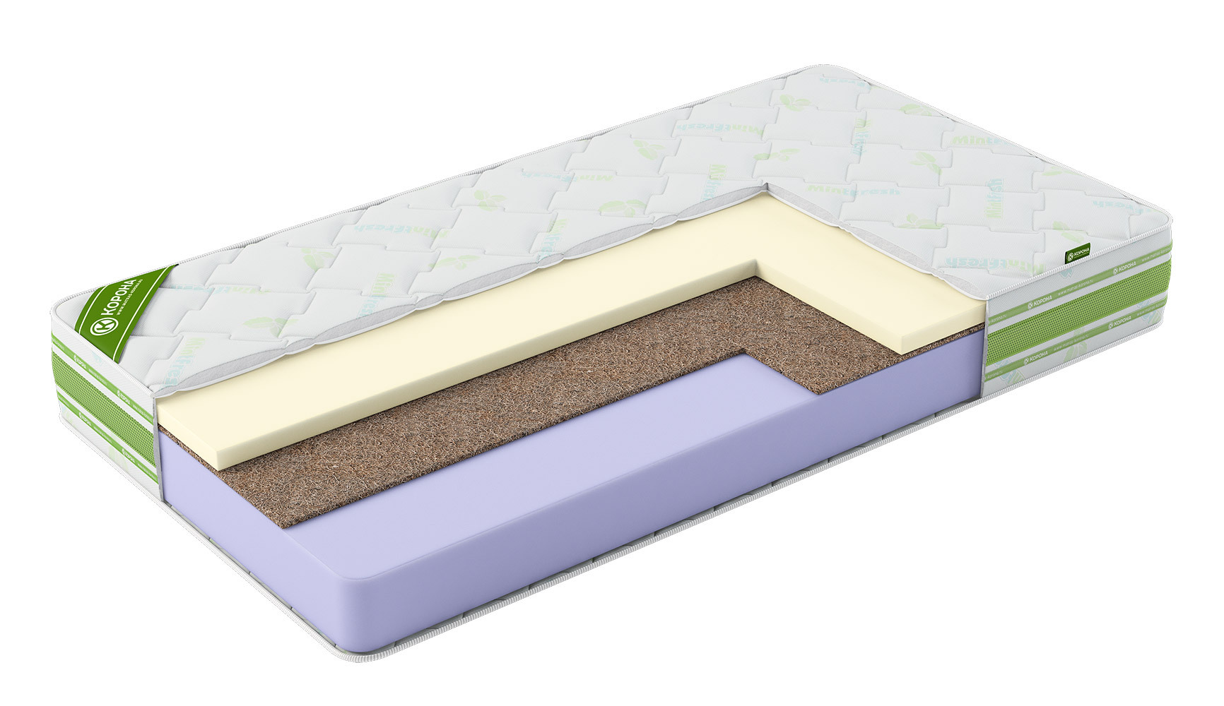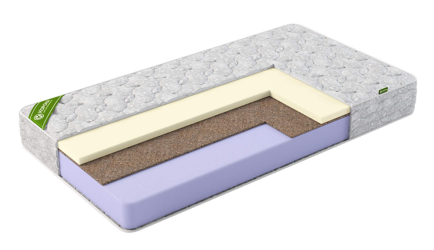 Беспружинная модель сочетающая в себе высокий уровень комфорта и способность выдерживать большой вес пользователя. Комбинация плотной ортопедической пены и слоя кокосовой койры равномерно распределяет оказываемое на матрас давление и не позволяет ему проседать от нагрузки. Пена с эффектом памяти смягчает спальное место, подстраиваясь под контур тела, и не оказывает обратного давления на мышцы и мягкие ткани.