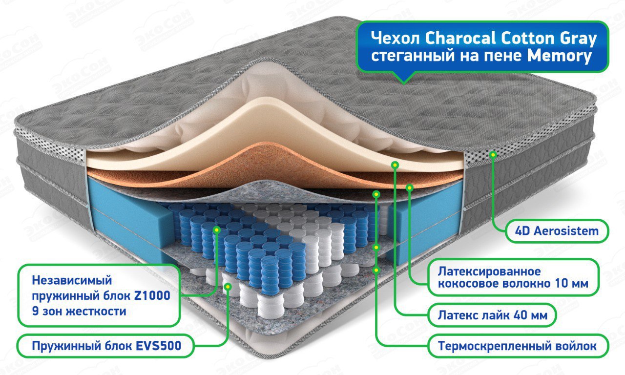 Натурального трикотажа Charocal Cotton Gray стеганный на пене Memory
