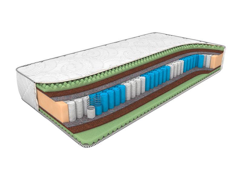 Ортопедический матрас Ergo Foam Smart Zone с микро-массажным эффектом. Наполнение матраса сочетает слой натуральной кокосовой койры и слой ячеистого высокотехнологичного вспененного материала Ergo Foam. Подобное сочетание способствует снятию напряжению с мышц, расслаблению. Микро-массажная структура улучшает кровоток спящего. Современный зональный блок Smart Zone распределяет нагрузку по зонам жесткости. Независимые пружины изолированы от соседних плотными чехольчиками из спанбонда. Надежная и прочная основа матраса выдерживает значительные нагрузки, является износостойкой и долговечной. Чехлом служит объемная трикотажная ткань, простеганная на холконе.