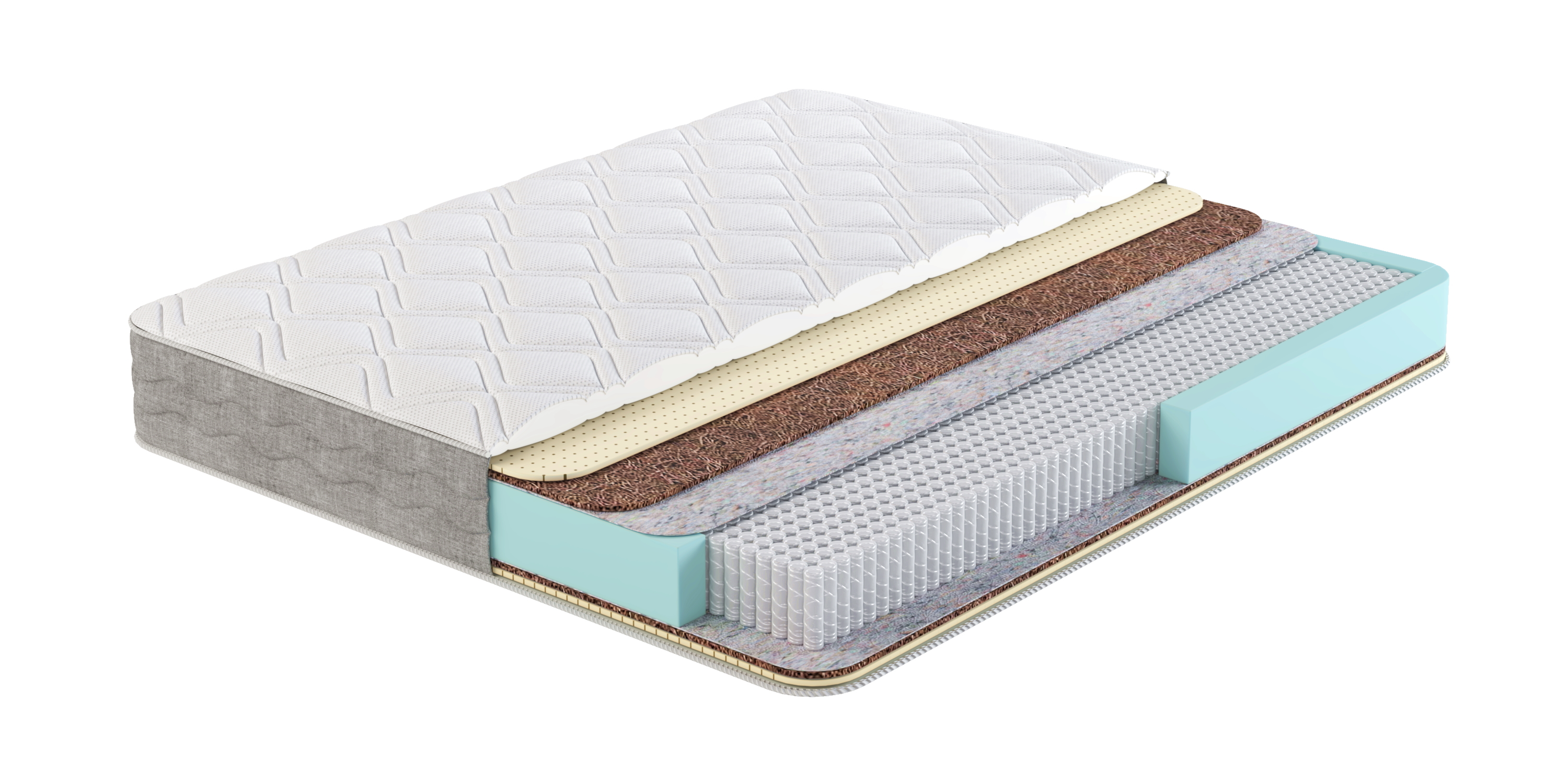 В составе комфортного слоя современные натуральные и гипоаллергенные материалы. Натуральный латекс гарантирует мягкость и упругость, а латексированная кокосовая койра оказывая положительное воздействие на тело спящего. Сочетание данных наполнителей позволяет достичь максимально комфортной средней жесткости и усиливает анатомические свойства.