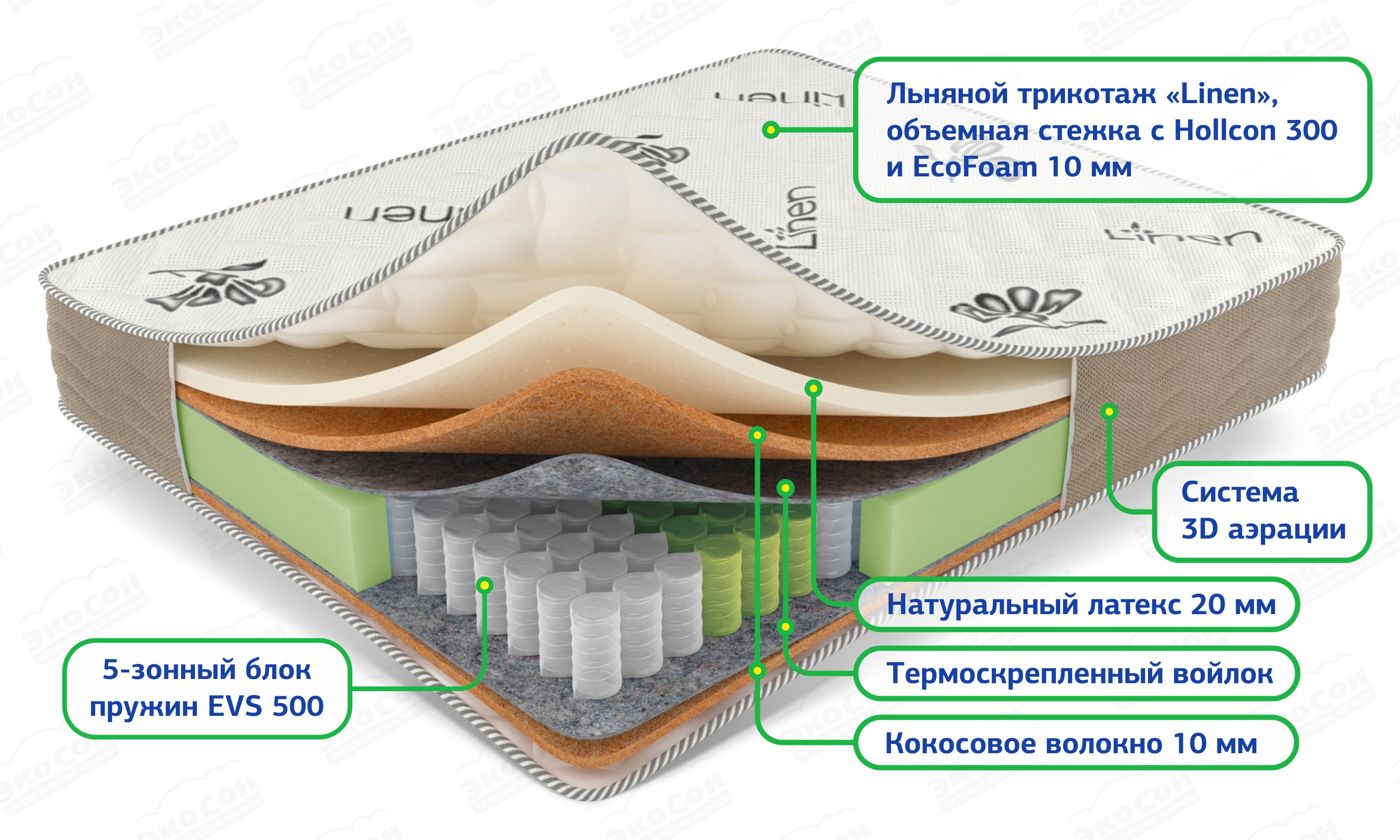 Чехол из натурального льняного трикотажа Linen, стеганный на Hollcon (300) и Ecofoam (10 мм)