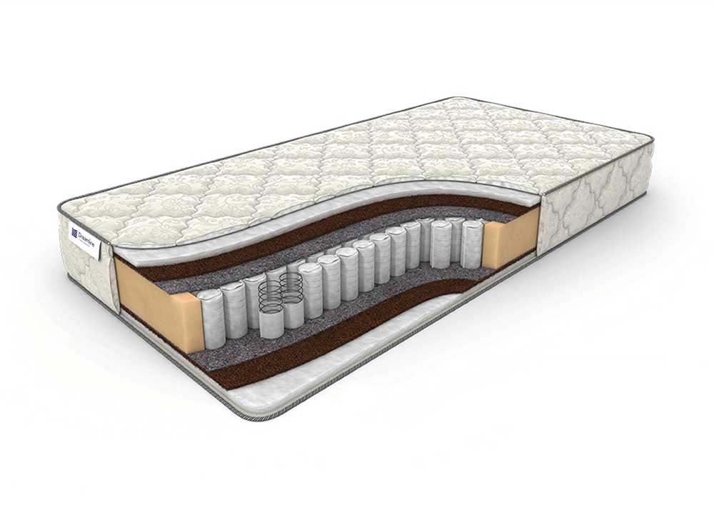 Комбинация современных синтетических и натуральных наполнителей обеспечивает комфорт и износостойкость матраса, гарантируя долгий срок службы.