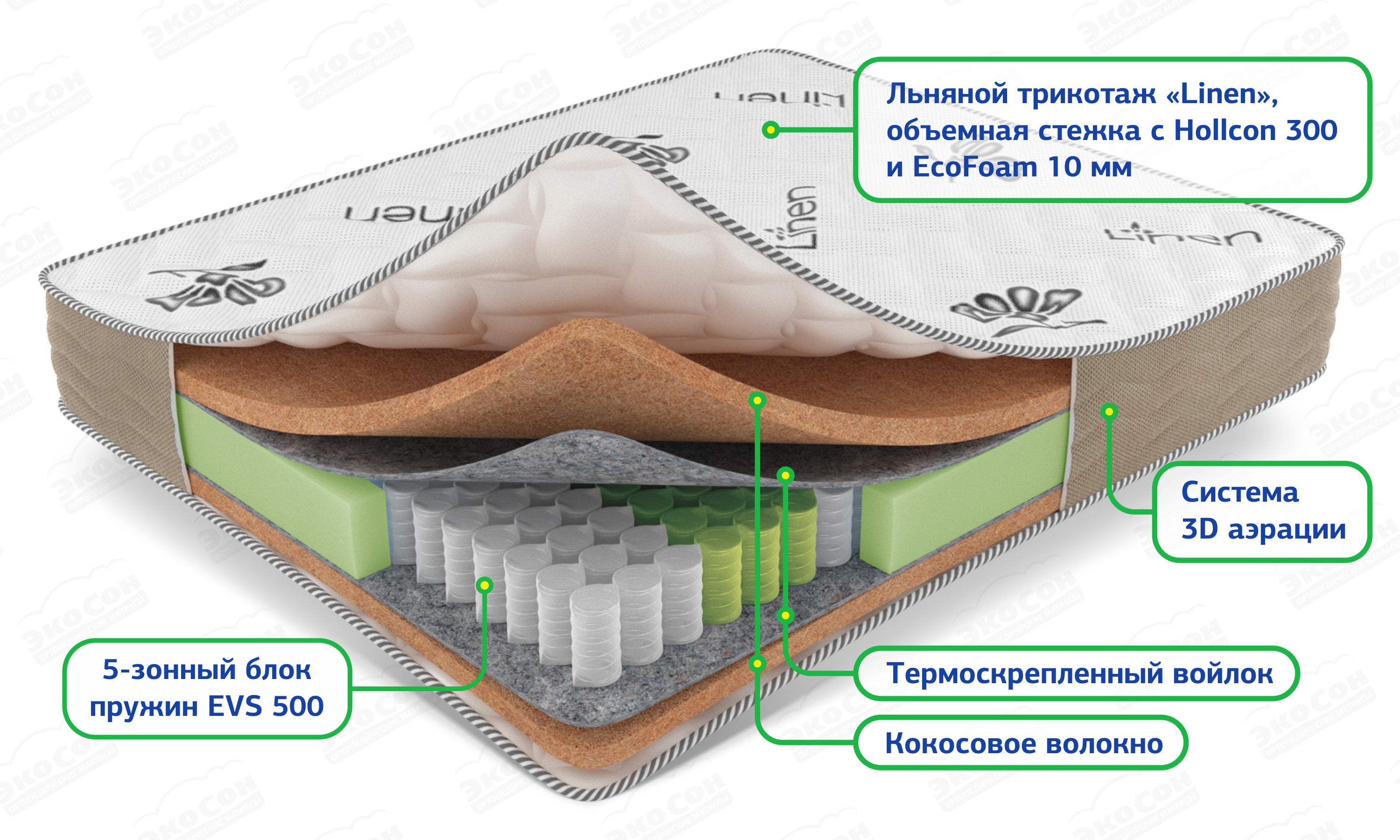 Чехол из натурального льняного трикотажа Linen, стеганный на Hollcon (300) и Ecofoam (10 мм)