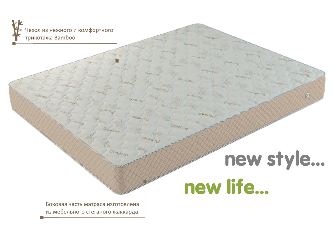 Особенностью данного матраса является его чехол, он состоит из набирающей популярность комбинации трикотажной ткани и мебельного жаккарда. Мебельный жаккард изготавливается методом особого сложного плетения, которое и является залогом повышенной износостойкости материала, который предотвращает деформацию боковин матраса об царги кровати.